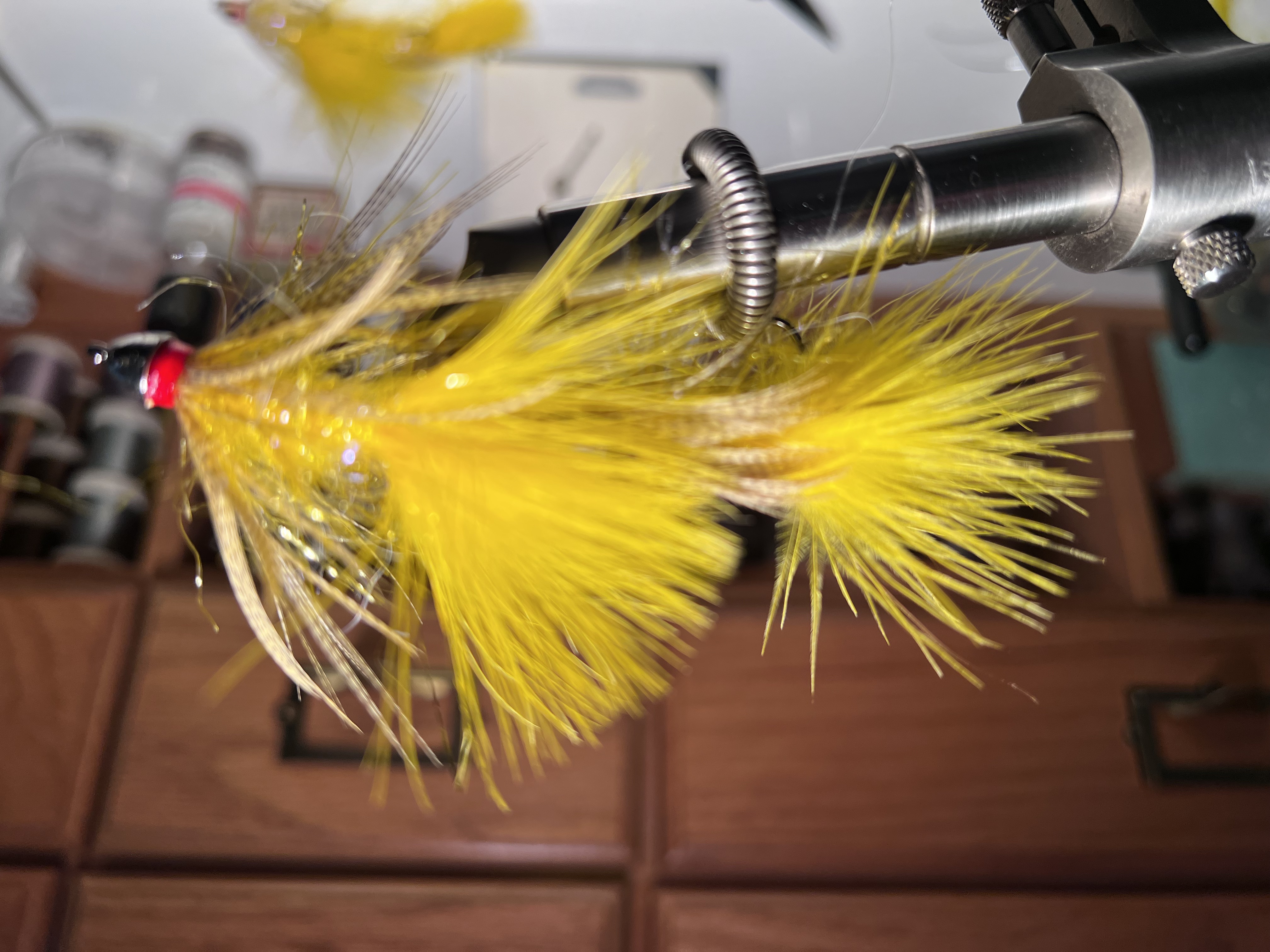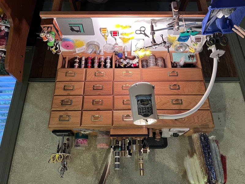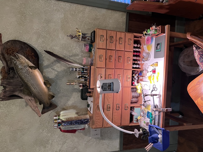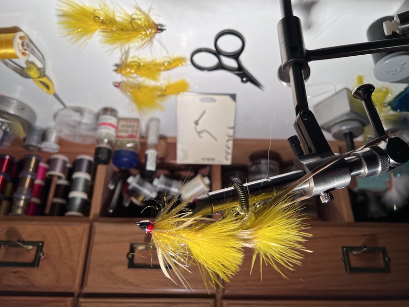 BoMy first time back at the vice since last June due to continuing retinal problems in both eyes. The articulated streamers look alright; but getting the proportions right on the size #20 midges is a real challenge. I think I have missed tying even more than actually fly fishing."Life is Good on the Fly!"